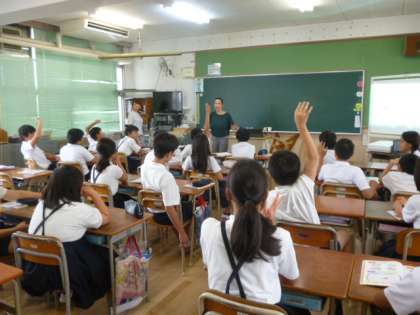 ポイントゲームをしています。中には5問中、5問とも勝った人もいました。ろうかにも楽しく盛り上がっている声が聞こえていました。