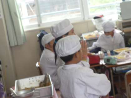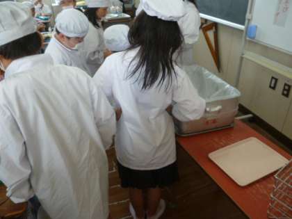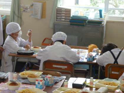 給食の準備中です。てきぱきと当番さんが動いてくれています。おいしくいただきます。