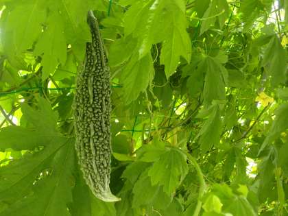 1枚目の写真は、学習園で育っているゴーヤの様子です。小さい黄色い花が可憐ですね。