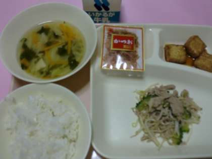 ★ゴーヤチャンプルー・すまし汁・あつあげのしょうがじょうゆかけ・ご飯・牛乳