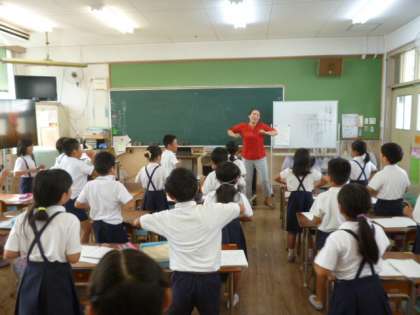 C−NETの先生と英語の歌を歌っています。みんなノリノリで、大きな声で歌っています。ABCソングも随分と声が出るようになってきました。
