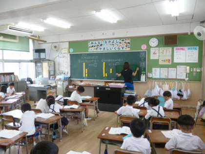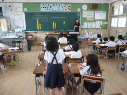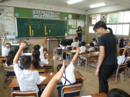 二けたと一けたの足し算や引き算をしています。元気よく、質問に答えています。