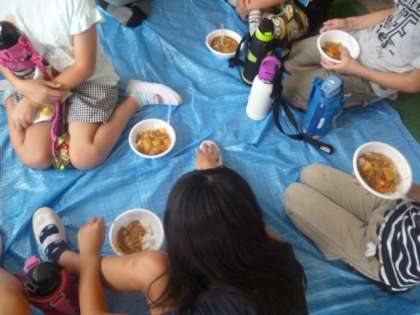 おいしいカレーが出来上がりました。早くから作っていただき、ありがとうございます。みんなおいしくいただきました。ごちそうさまでした!
