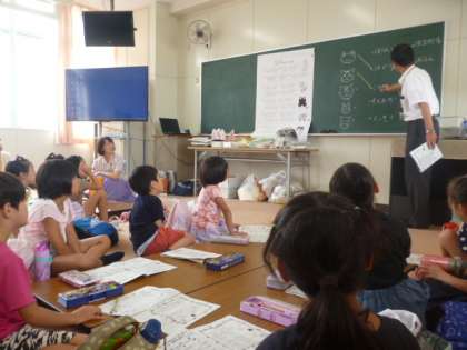 低学年の部の様子です。動物の名前や鳴き声について学んでいます。