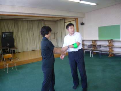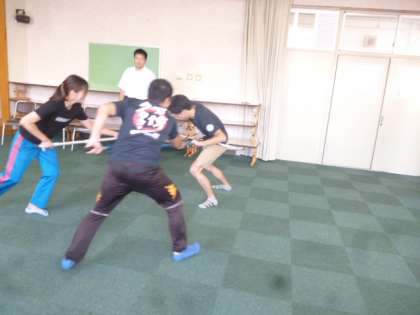 不審者が侵入したことを想定し、刺股の使い方を教わったり、護身術を教えてもらったりしました。生野警察の方、ありがとうございました。