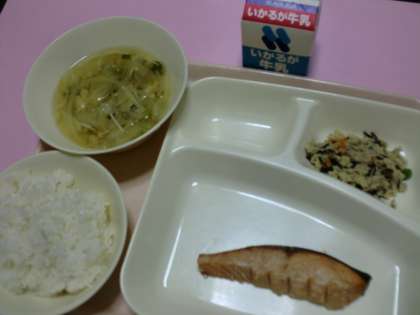 ★さけのしょうゆ風味焼き・五目汁・高野豆腐の炒り煮・ご飯・牛乳