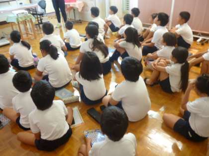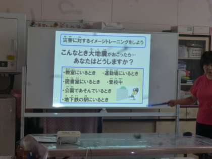 昨年度、学習した災害時の身の守り方についての復習をした後に、他の学年と同様、「こんな時どうする?」かを一人一人が考えました。その後、二測定を行いました。