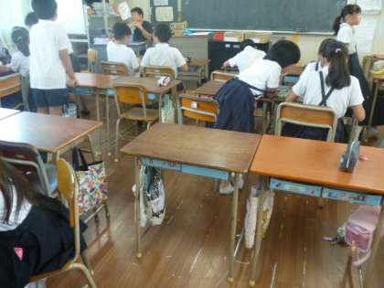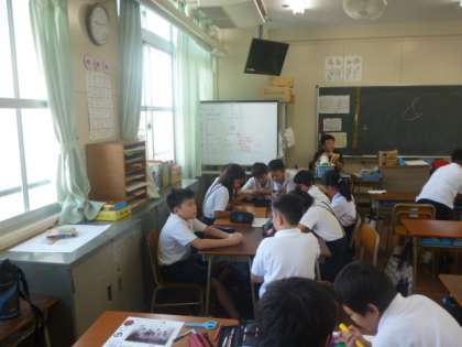 先日決めた係り活動のポスターづくりをしています。自分たちの係りの名前を考えたり、実際の仕事の内容を書いたりしています。