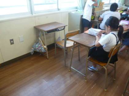 前回はボタンをつけましたが、今回はまつりぬいをしています。上手にできています。
