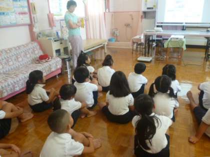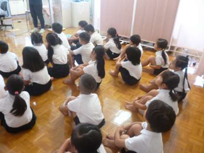 1年生も二測定の前に「こんなときはどうする?」の学習をしました。昼休みのいろいろな場面で、地震が起こった時に、どう行動したら良いかを学びました。しっかり覚えておいてね。