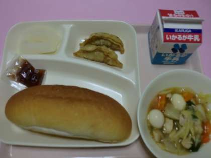 ★あげぎょうざ・中華煮(鶉卵除去食)・なし(豊水)・コッペパン・いちごジャム