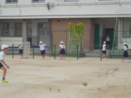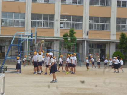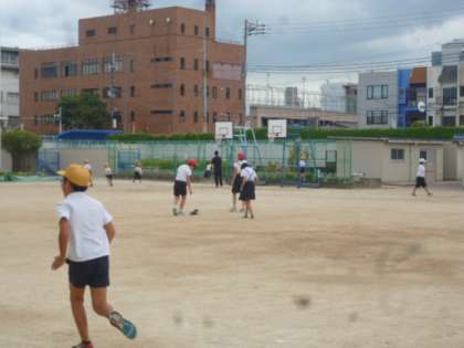 今日も良い天気なので、たくさんの人がグラウンドで遊んでいます。バスケットボールをしたり、おにごっこをしたり、鉄棒をしたり多くの笑顔が見られました。