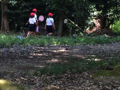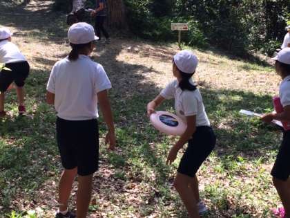 フライングディスクゴルフが始まりました。だんだんとコツがつかめてきたようです