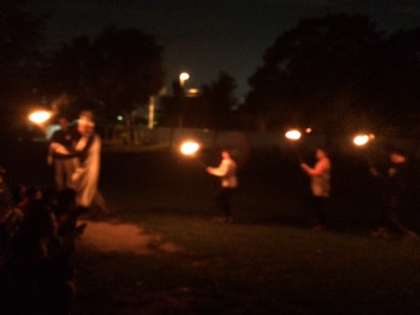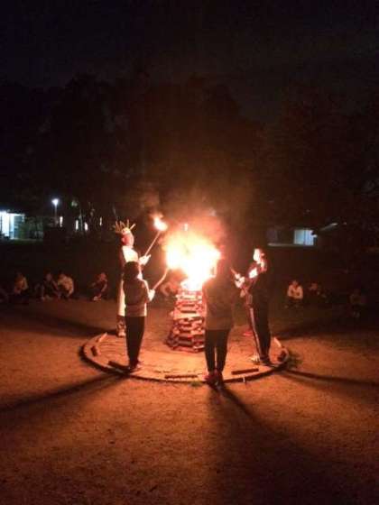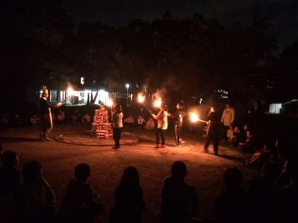 キャンプファイヤーが始まりました。火の神から火をさずかり、明るくなりました。