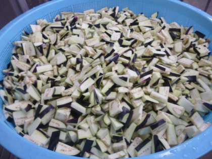 「焼きナスのみそだれかけ」は、旬のなすをさっと水にさらしてあくを抜いて、油を絡ませます。それを焼き物機で焼き、赤みそ、砂糖、濃い口しょうゆ、水を合わせて煮たたれをかけたものです。