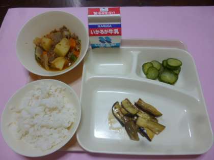 ★肉じゃが・焼きなすのみそだれかけ・あっさりきゅうり・ご飯・牛乳