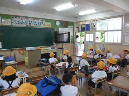 引き渡し訓練の様子です。緊急時における児童の安全確保と保護者との連携をスムーズに行えるようにするのが目的です。今後もご協力をよろしくお願いします。