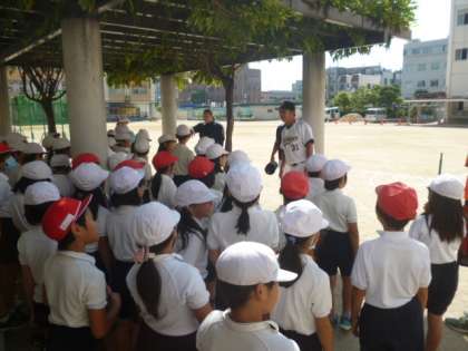今日はオリックスバファローズの小学校訪問による出前授業です。