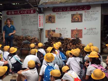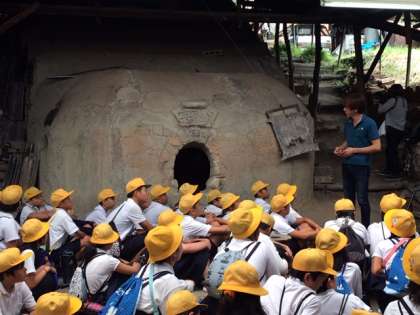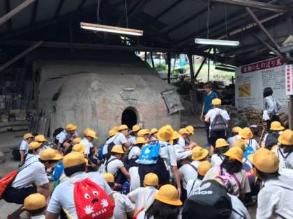 陶芸体験が終わり、信楽でもっとも大きな登り窯を見学しています。