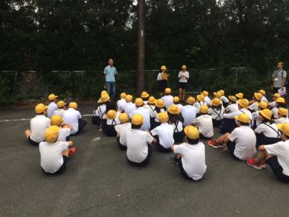 おはようございます。朝の集いの時間です。みんな時間通りに集まることができました。みんなよく眠れたようで、元気です。今日の活動も楽しもう!