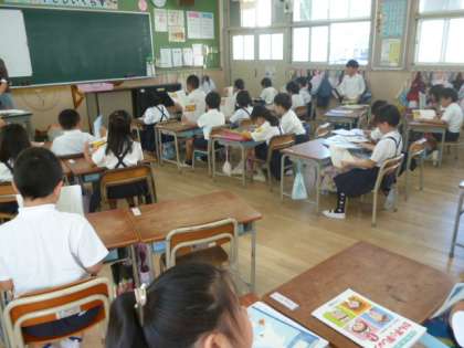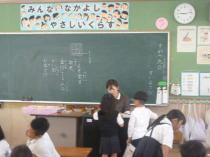 「出る」の漢字について学習しています。きれいに書けるようになってきました。漢字練習が終わった人は、姿勢を正して教科書を音読しています。
