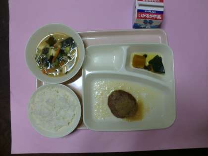 ★和風おろしハンバーグ・みそ汁・かぼちゃのいとこ煮・ご飯・牛乳