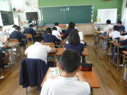 先生がいなくても、静かに読書中です。さすがは6年生。