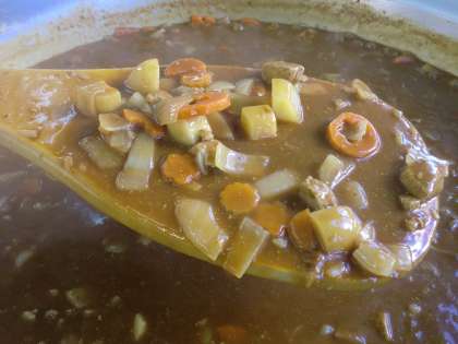 「ポークカレーライス」は、小麦アレルギーのある児童生徒も食べられるように、米粉のカレールウの素を使用しています。豚肉を主材に、じゃがいも、たまねぎ、にんじんを使用し、セロリ、にんにくを香りよくいため、風味を増しています。