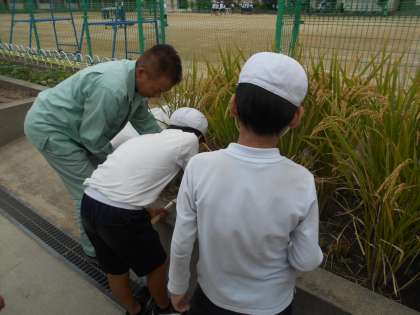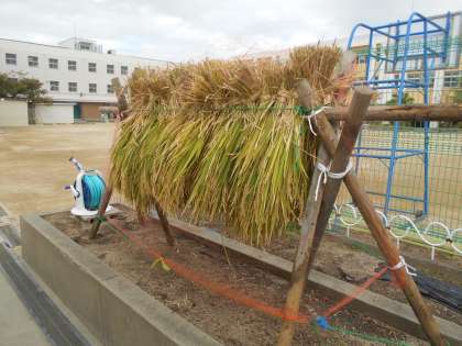 環境委員会で栽培していたもち米の稲刈りをしました。