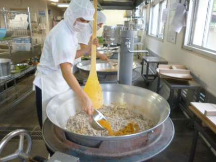 今日は、白菊幼稚園との交流給食がありました。幼稚園児の様子をのぞいてみると・・・。上手にタコライスをまぜまぜして食べていましたよ!来年4月の入学を待っていますよ!