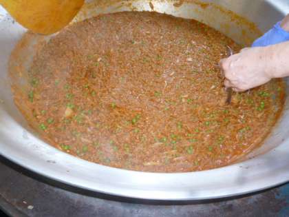 「タコライス」は、沖縄料理のひとつで、牛ひき肉、豚ひき肉、たまねぎをカレー粉、トマトピューレ、ケチャップ、ウスターソースなどで味つけし、青みにグリンピースを加え、ごはんの上にかけて食べます。