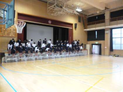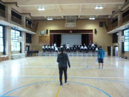 体育館で北巽フェスタの練習をしました。職員室まで、大きな歌声が聞こえていました。細かな所作もしっかり確認していきます。