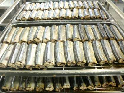 「さんまのさんしょう焼き」は、焼き物機で焼いたさんまに、さんしょう風味のしょうゆだれをかけます。
