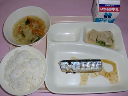 ☆さんまのさんしょう焼き・すまし汁 ・高野どうふの煮もの・ご飯・牛乳