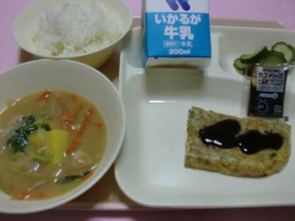 ★お好み焼き・豚汁・きゅうりの甘酢あえ・ご飯・牛乳