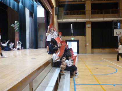体育館での練習です。みんなの動きが随分とそろってきました。歌声もどんどん大きくなっていきます。