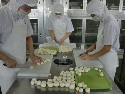 使用し 、塩、うすくちしょうゆ、こいくちしょうゆで味つけした 煮ものです。今日の里芋は、とてもよいものがはいっていましたょ。