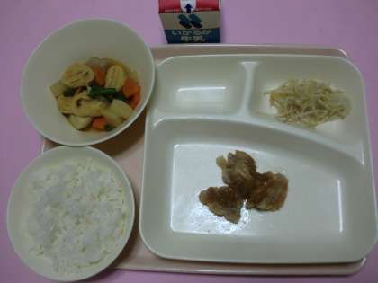 ★あげどりのねぎだれかけ・含め煮・もやしのゆずの香あえ・ご飯・牛乳