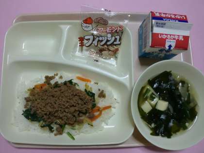 ☆ビビンバ・わかめスープ・ アーモンドフィッシュ・牛乳