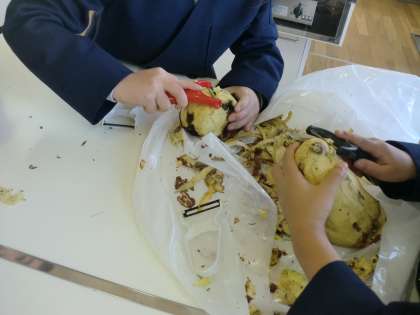 2年生は、育てたさつまいもを「茶巾しぼり」にして食べました!
