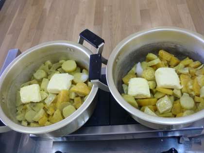 ていねいに皮をむいて、ゆでたさつまいもに、バター、砂糖、生クリームを入れてつぶしたものを、それぞれがラップで茶巾しぼりを作りました。