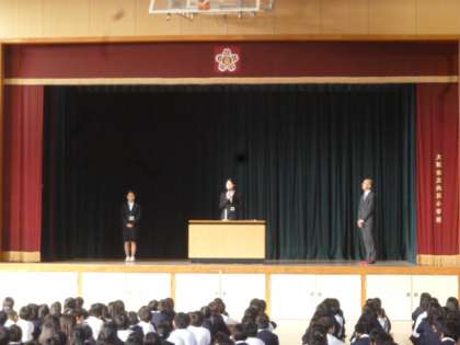 次に、先週から来てくださっていた教育実習生からの挨拶がありました。1週間と短い間でしたが、ありがとうございました。