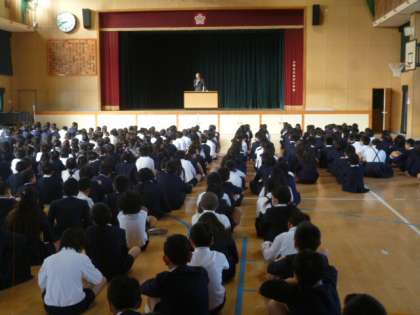 みなさん人間なのでいつか死ぬ時がありますが、死ぬ原因の一位は何か知っていますか?そう、がんなんです。2位は心臓病、3位は脳卒中です。これらの病気は先生が子どもの頃は、成人病といいました。でも今は呼び方が変わりました。生活習慣病といいます。なぜ、そういった名前に変わったかというと、この病気は生活に、とても関わりがあります。規則正しい生活をすることで、病気になる確率をぐんと下げることができます。そして、呼び方を変えることで、大人だけでなく、子どものうちから生活習慣を整えていきましょうという意味がこめられています。「すずめ百まで踊り忘れず」ということわざがあります。これは、小さい時に身についた習慣は大人になってもなかなか変わらない、という意味です。ですから、みなさんが子どものうちから良い生活習慣を身につけるということはとても大切です。では何に気をつければ良いでしょうか?それは元気モリモリ週間の活動そのものです。食事、運動、睡眠です。1、2年生の人以外は先週、睡眠について学びましたね。(1、2年生は今日と明日に学習します。)今日からは特に運動をがんばる1週間にして欲しいのです。1学期のモリモリ週間の時は、意識して縄跳びをしてくれている人もいましたが、まだまだ少なかったです。学校全体でもっと一緒に運動をしていきましょう。という雰囲気になってくれれば、とてもうれしいです。少し肌寒くなってきましたが、みなさんが元気に運動場に出て、活動してくれることを楽しみにしています。そして、ずっと続けていく習慣を小学校の間につくってください。それが、長生きにつながります。