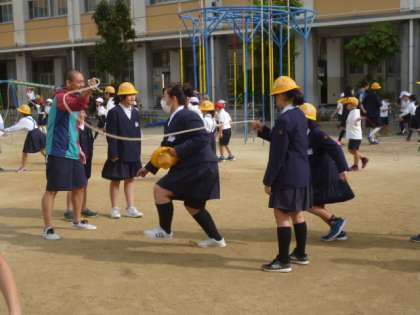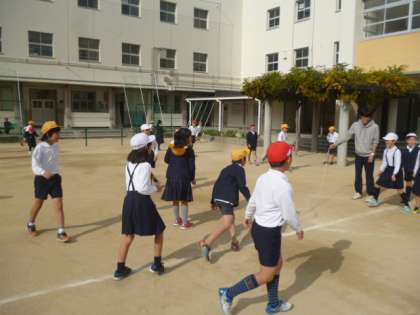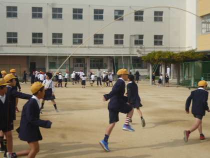 たくさんの児童が運動場で活動しています。