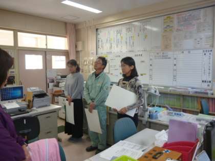 職員朝礼で、大阪市で長きにわたり、ご勤務いただいている教職員の表彰式がありました。長い間、お疲れさまです。引き続き、よろしくお願いします。