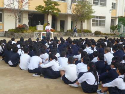 本日、不審者が侵入したことを想定した避難訓練を行いました。発見、警察への連絡、児童先生たちへの放送連絡、教室内避難(入り口を固めての待機)、警察到着、避難者確保、安全確認、運動場への移動、の順番で行いました。スムーズに動けていたように思います。運動場では担当の先生からお話がありましたが、真剣に聴くことができていました。