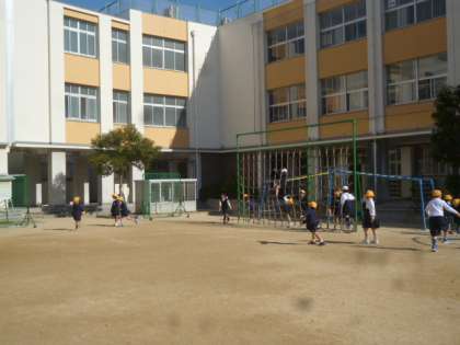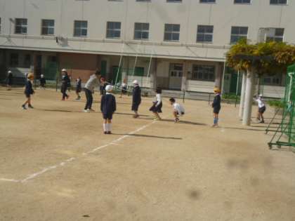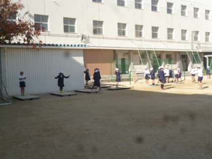 小春日和のもと、今日も子どもたちは元気に運動場で活動しています。元気モリモリ週間で取り組んでいる縄跳びでは、ボードを使っていろいろな跳び方にチャレンジしたり、大縄を使ったグループ跳びに挑戦したりしています。また、鬼ごっこや遊具を使った遊び、バスケットボールをするなど、運動場は華やかです。