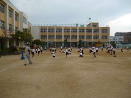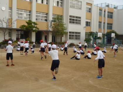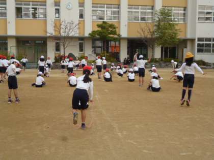 今日も元気よく、運動場での授業です。元気モリモリ週間は終わりましたが、体力アップをかねて授業の最初になわとびをしています。