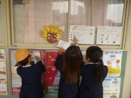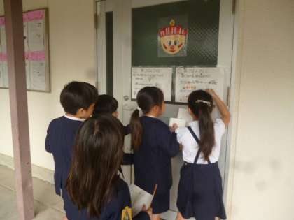 11月25日(月)〜29日(金)は食育週間です。「食育ウォークラリー」を実施しています。校内に、給食委員会が考えたクイズを配置し、クイズを探しながら解答用紙に記入していきます。今年のテーマは「朝ごはん」と「給食」です。子どもたちは、嬉々としてクイズを探し回って取り組んでいます。