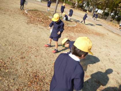 1年生は公園たんけんをするために、巽公園に出かけていきました。